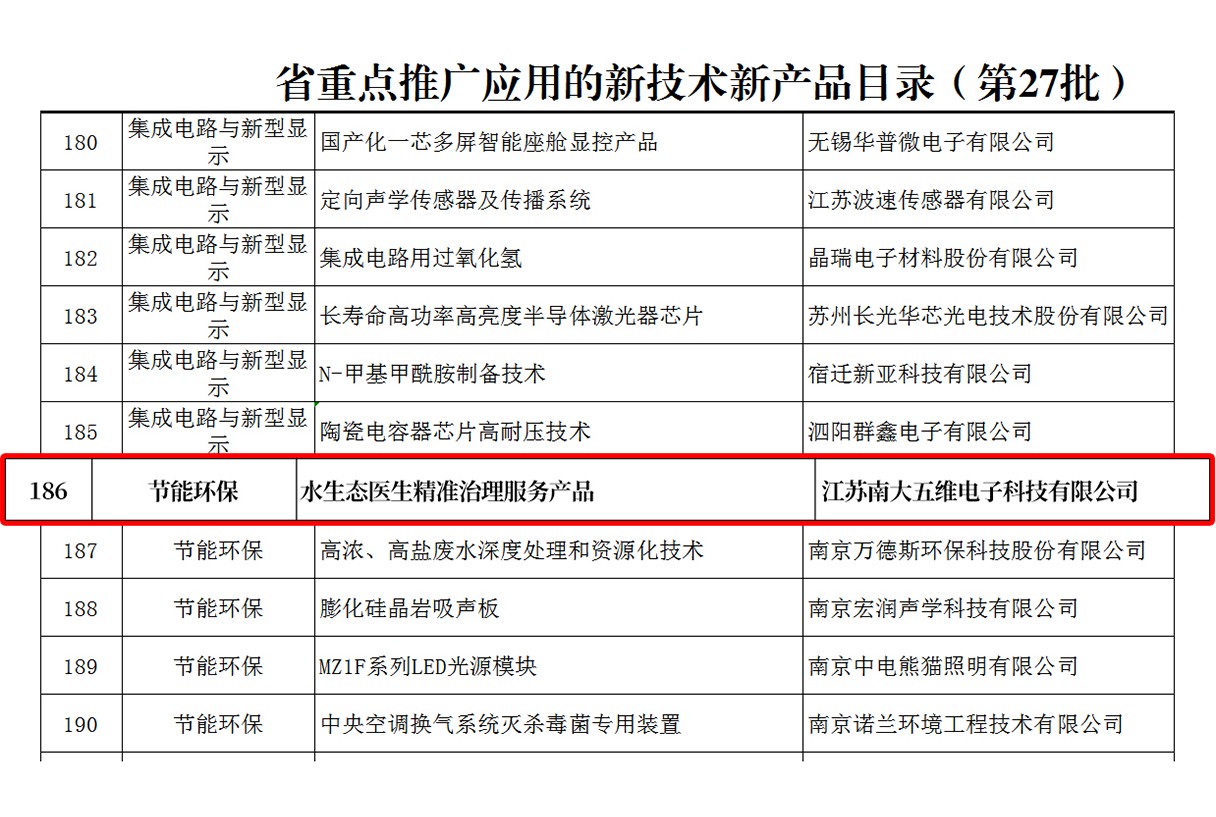 浏览量:1753江苏省新技术新产品推广应用工作联席会议办公室公布了第27批省重点推广应用的新技术新产品,简称“两新”目录。我司“水生态医生精准治理服务产品”成功入选第27批省重点推广应用“两新”目录。